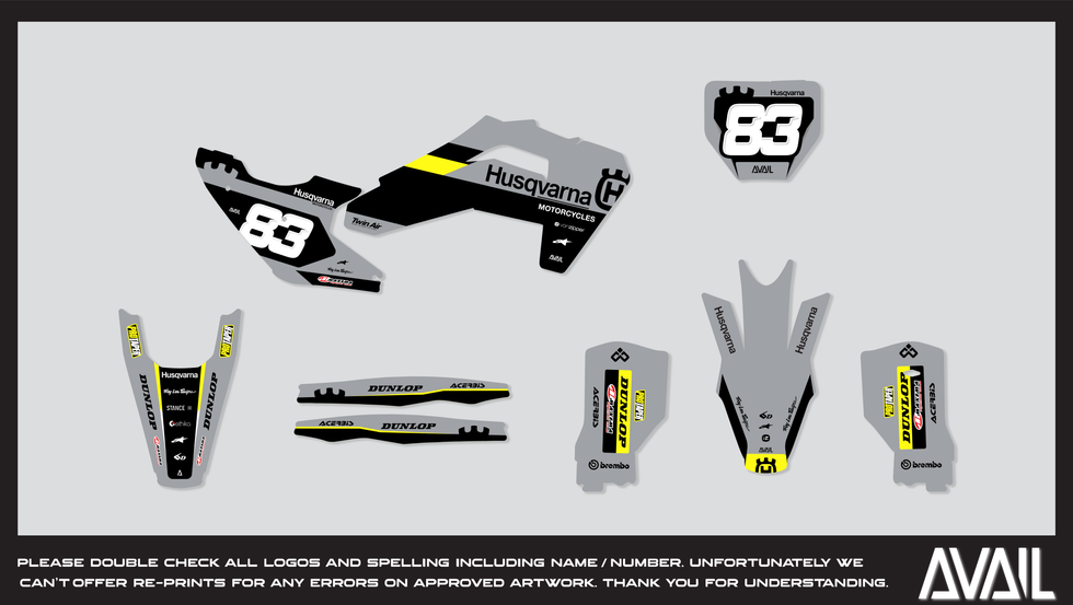 If you're specific model / year is not listed please email us directly at availgraphics.us@gmail.com or via IG @availmxgraphics. We have many other bikes not listed and are confident we can get you taken care of.